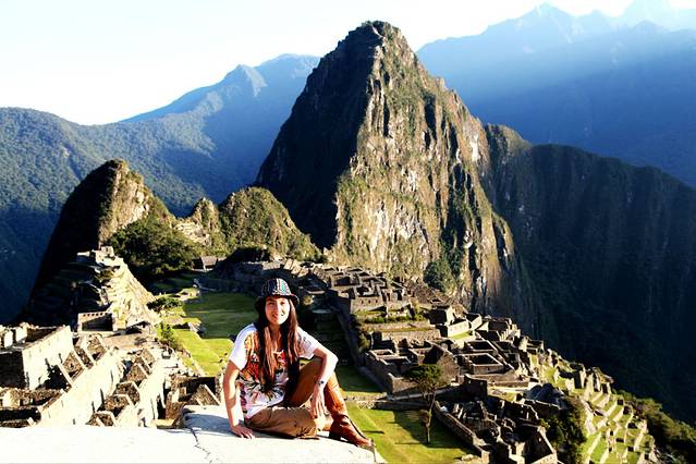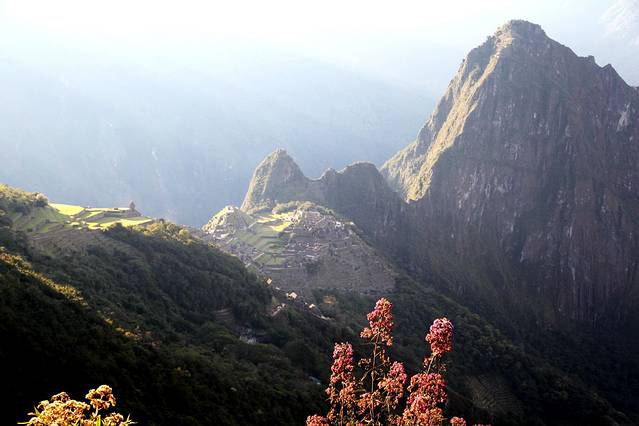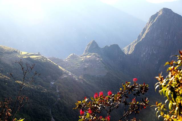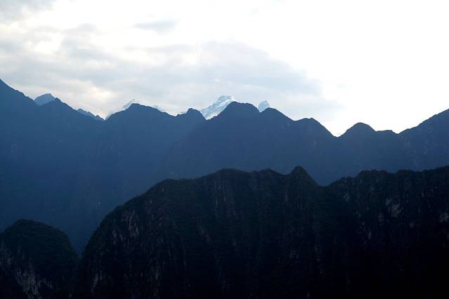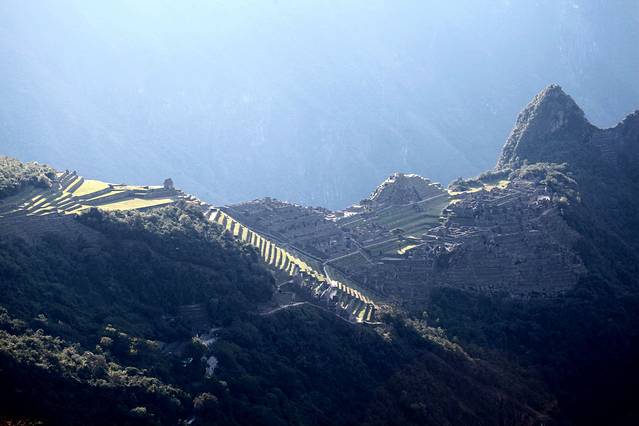 有点小激动,虽然夕阳正好从对面照过来,使本来就小小的马丘比丘轮廓略显模糊。