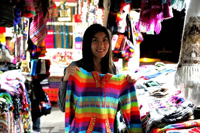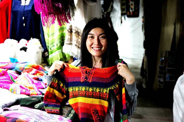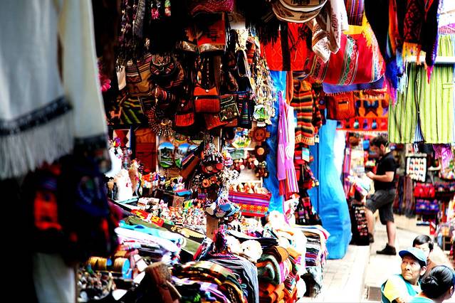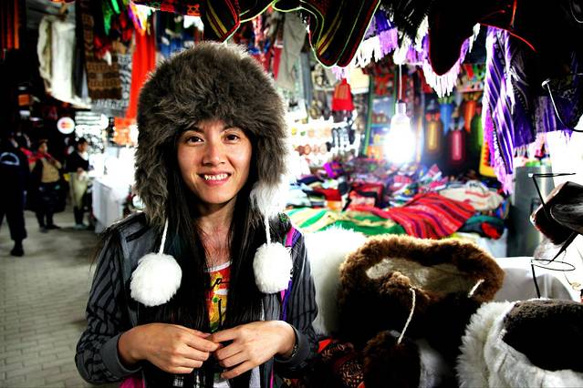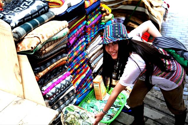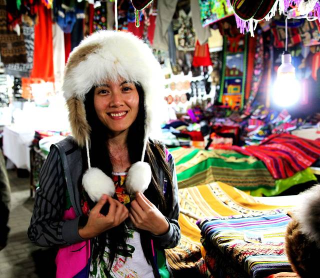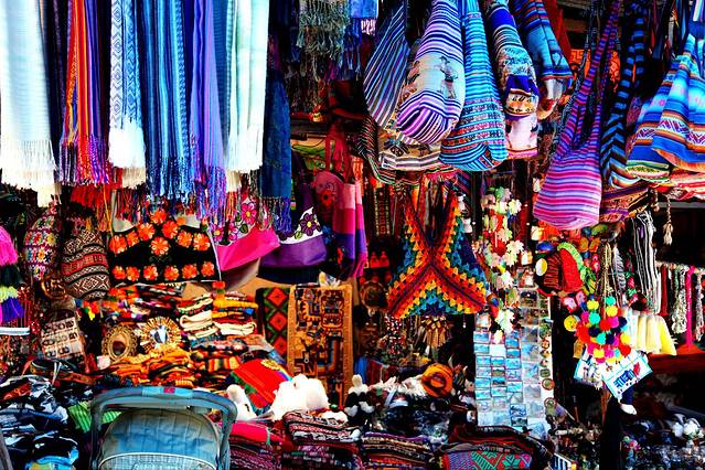 集市里大多是在卖山地特色的编织物以及用其制作的各种服饰用品,还有用alpaca毛做的围巾、帽子和手工艺品。