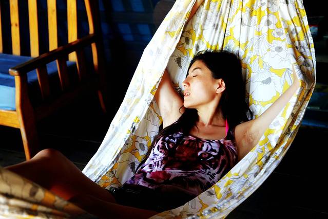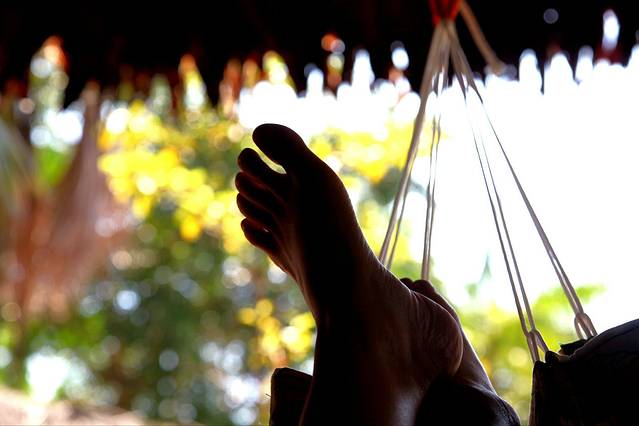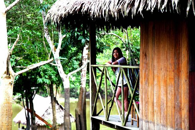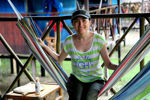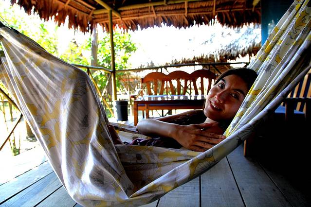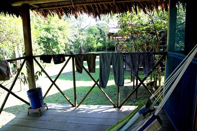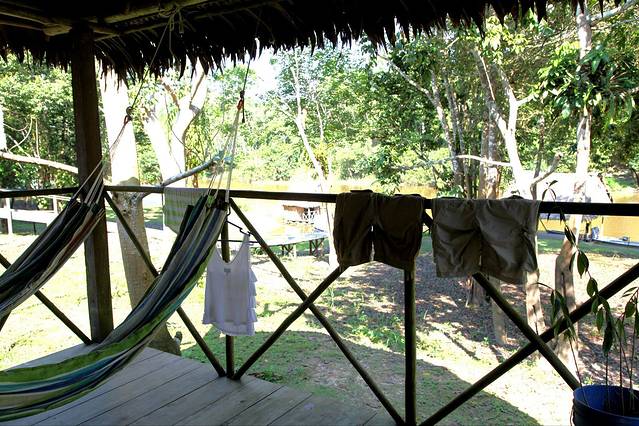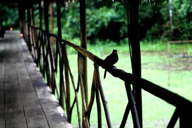 木屋里陈设很简单,床单什么的也都感觉潮乎乎的,让人喜欢的是有一个大阳台,挂着吊床,可以躺在上面睡午觉或者看看鸟儿什么的。以下是从我们房间的阳台拍到的日常景象。