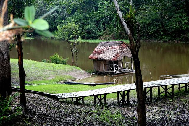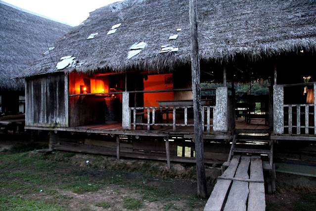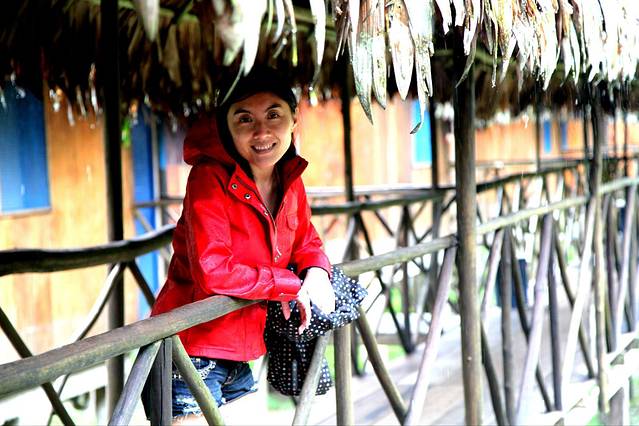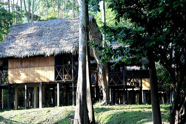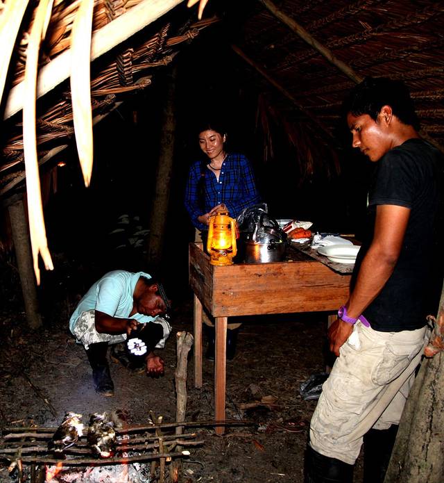 睡醒起来,似乎好了一点,再加上吃了一点Rafa给的止疼片,头疼有所缓解。但不知是不是因为这里太潮湿的缘故,身上总是很乏,人也非常渴睡,不想起床。转念又想,如果就这样睡到明天早上,也许会越睡越没精神,所以还是挣扎着起来了,去餐厅吃晚饭。晚饭吃的是一种大叶子包的米饭(类似于荷叶饭),里面有鸡肉和橄榄,非常好吃!可惜数量很少,基本每人只拿到了一个。后来在Iquitos的机场也看到有卖,在利马参观美食节的时候,知道原来是北部亚马逊一带的特色菜。