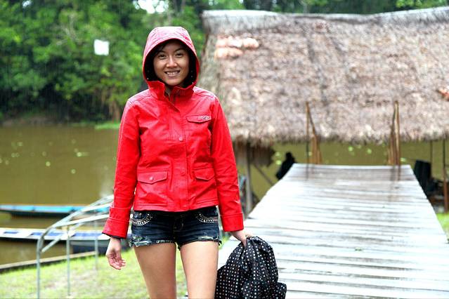 回去的路上,大雨变成了暴雨,每个人都既裹着雨衣又打着伞,可还是无济于事。咬着牙扛吧。开了40多分钟回到lodge的时候,每个人又都是落汤鸡了。这可还是大家都有备而来的呢。Victor感慨道,the nature beat us, again!Rafa说哎呀大家没有什么好抱怨的啦,我们都知道这里叫rain forest嘛。可是,我还是想说,现在不是传说中的旱季么……