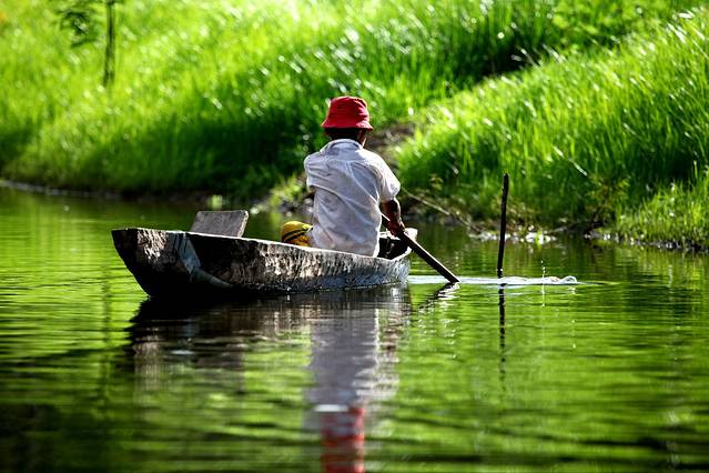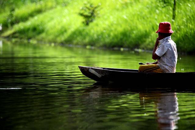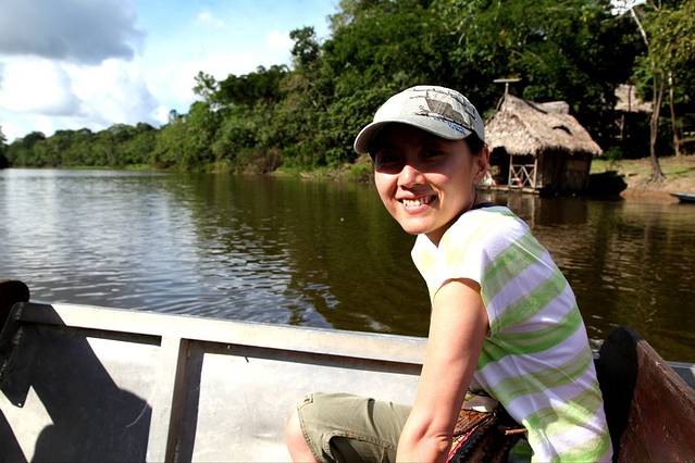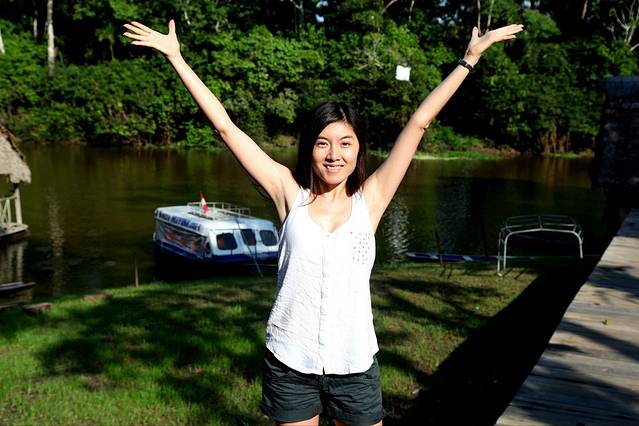 照了几张相,就把小鳄鱼放回去了,看着它一摇一摆地游走,我们也打道回府。回到lodge,不到10点,但是感觉已经累的不行了。Rafa说明天我们要一大早起来,坐船去主河道看dolphine,在船上吃早饭。想到这个,果断倒头就睡了。