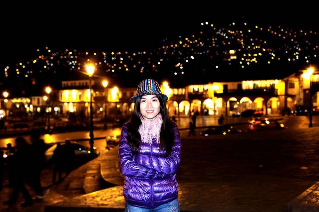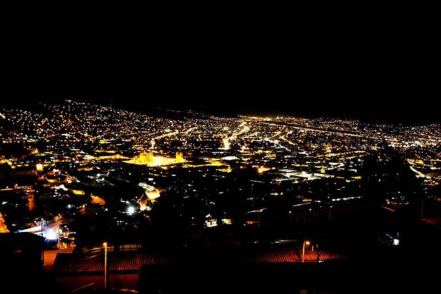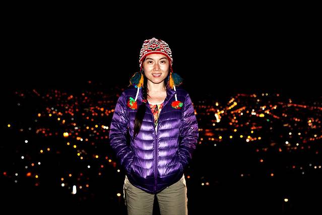 从Chinchero又继续开了半个小时左右,终于看见Cusco的灯光了。远远地从山上望下去,城市显得很繁华。忍不住连比划带嚷嚷地叫司机停下车。