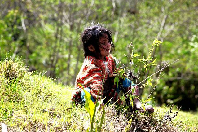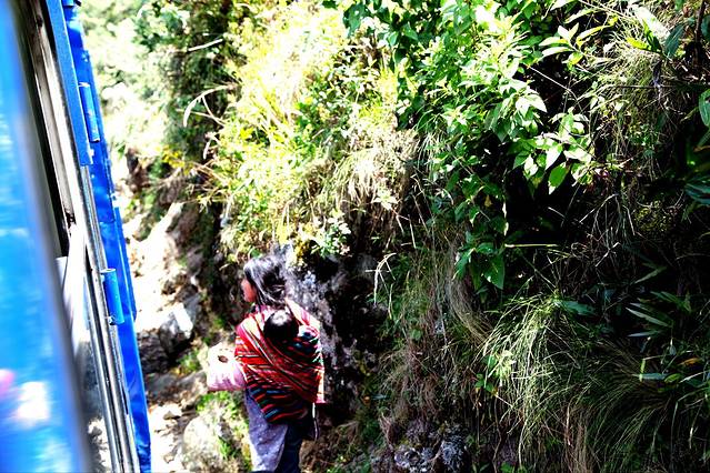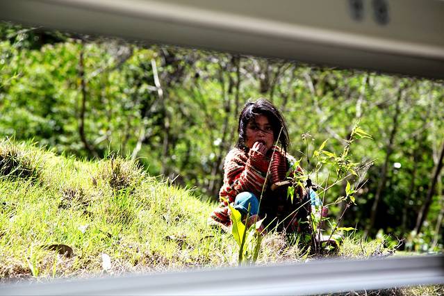 列车中途停下等着错车时,附近的当地人就来兜售些小商品。这个在山坡上静静等待的小姑娘吸引了很多人的注意。