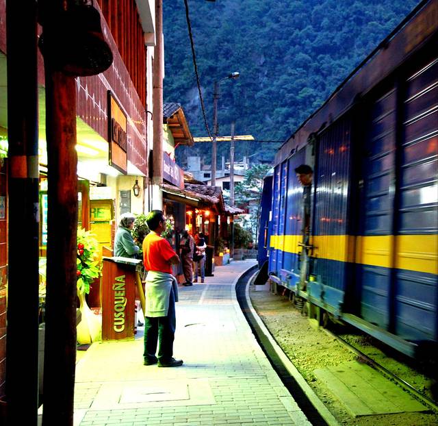 一切打点停当,我们就从Ollantaytambo登上了去马丘比丘脚下Aguascalientes的列车。这条线路据说每个小时都有车,主要是为各国游客开通的,2小时20分的车程,单程票价50-75美元。