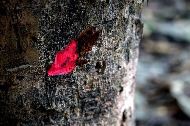 路上还是不时看到一些蜘蛛、蜈蚣、鸟儿一类的小动物。地上这个,我如果不说你能看出趴着只青蛙么?