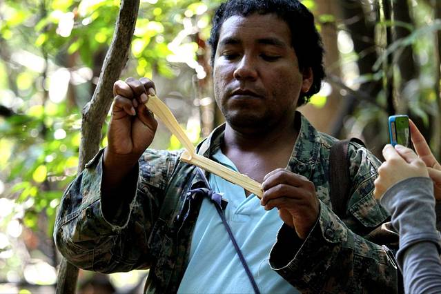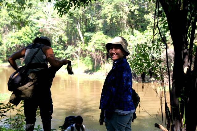 两个米国队友表示已经精疲力竭了,而且丛林里蚊子太疯狂,最多再走10分钟,就恨不得立刻回lodge去。我倒觉得今天比昨天精神好很多,应该还能再走一个半小时没什么问题。问Rafa还要走多久,答说大概两个小时。Adri瞬间崩溃。Victor说还好,只比我们的maximum多半个小时。于是饭后迅速收拾好东西,动身出发。