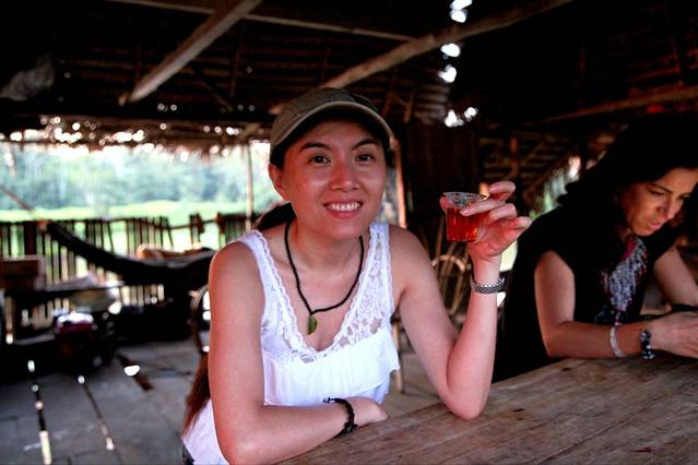 回到lodge,我们四个浑身都已经湿透了。一路船开得快,被风吹得还挺冷。赶紧各自给自己弄了杯热的喝。来雨林的第一个教训啊,什么时候出门都别忘了带雨衣。