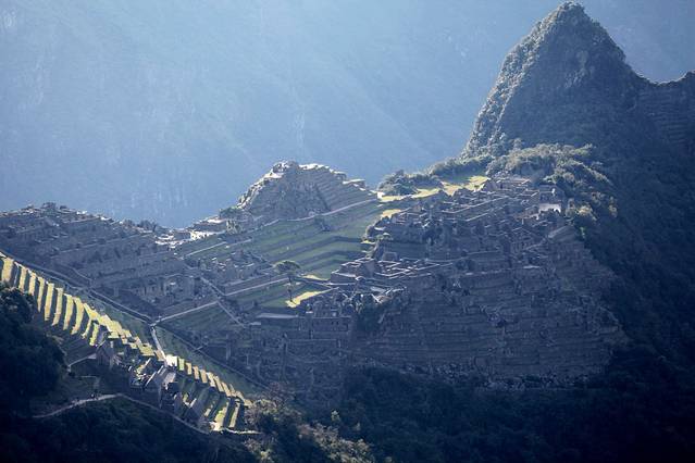 下午再次进入马丘比丘,阳光明媚而不炽烈,让人能很舒服地披在身上。四周群山的轮廓更加清晰了,远眺让人心情舒畅。