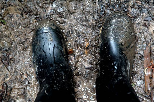 看一下泥泞的路吧。这是比较浅的地方。可以脑补一下每一脚踩下去都是噗哧噗哧地,又软又粘地陷进去的感觉。