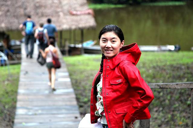 一早被闹钟闹起来,刷牙洗脸穿好衣服,感觉还没睡醒呢就上了船。据说今天可能会在河里游泳,所以把泳衣也换上了。吸取昨天的教训,不仅穿了防雨的外套,包里还塞了一件雨衣,又顺手从码头拿了两把伞。