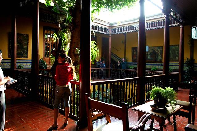 回到Casa Aliaga,费劲巴拉地和看门人扯了半天。秘鲁普通劳动人民的英文真的很差呀(几乎一个字都不会说),而且明摆着我们不懂西班牙文,他还嘀里嘟噜地说个不停。后来来了一个会说少许英文的,终于搞清状况让我们进去参观了。本来应该有讲解的,可是他很抱歉地说,他不会用英文讲,让我们就自己看看得了……