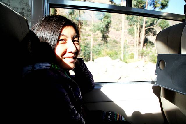 不知不觉就到了Ollantaytambo,觉得这趟火车坐的很愉快,是个意外的惊喜。而且这车的样子也很可爱,驾驶室只占车厢一角,另外半边是一扇大窗。乘客可以从这扇窗看到火车正前方的风景。