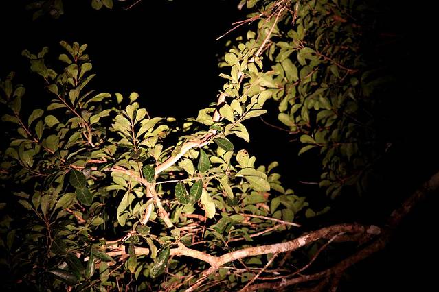这个晚上没有什么太大的惊喜。Rafa指给我们看了一条缠在树梢的蛇。我这照片是400镜头推到最近了。黑灯瞎火的这他都能看见,太他妈不是人了。