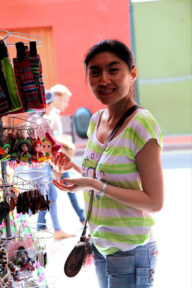 烤成人形的面包,我在旁边看了又看,询价又照相,最后也没买。可是摊主也不介意,看我们照相时还举起面包配合。不得不说,对秘鲁人民印象很好,觉得遇到的人都很纯朴、友善,整天乐呵呵。形成巨大反差的是在埃及,如果多看两眼问个价钱,买卖不成埃及商贩张口就骂,甚至他吆喝要你过去看你没理他,他也会骂。是不是阿拉伯人还是比较aggresive一些呢?