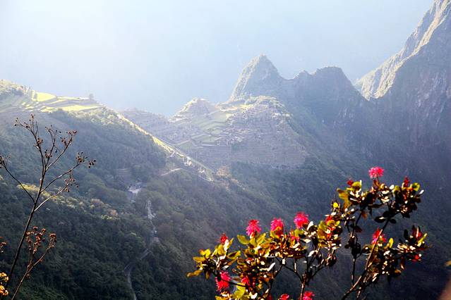 从营地出来,彻底急了,马不停蹄地赶路,相也顾不得照了。这样,终于,在4点半前到达了Sun Gate。Marco对一路叫苦的我们说,没什么好抱怨的啦,快来看,下面就是马丘比丘了。