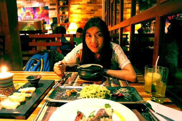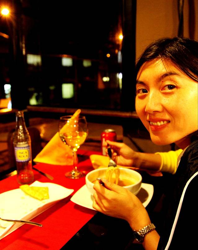 回到客栈,还是原来那家,老板已经把行李给我们放回原来的房间去了。寒暄了几句,得知我们那天还是走了trail,老板直夸我们。简单收拾了下东西,换了条裤子,就跑出来找地吃饭了。还是上次来过的那个广场。
