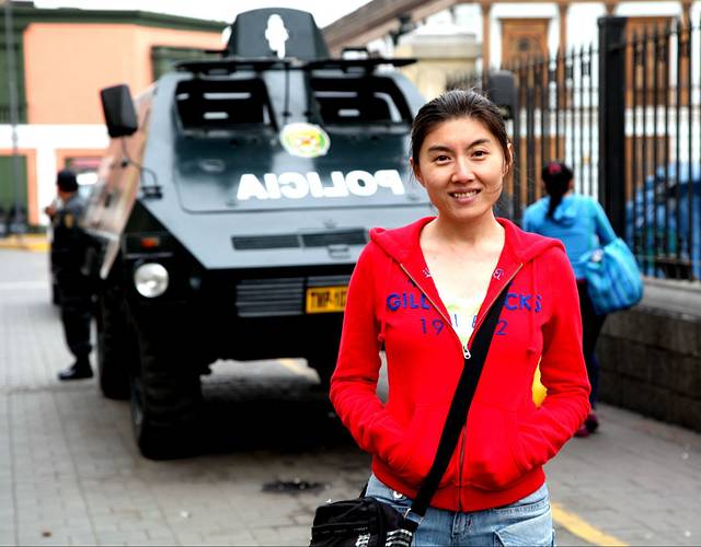 这天利马的天气让人失望,又阴又冷,最高气温只有18度。据说前几个星期一直有20多度来着,就这两天来了寒流(成心跟我过不去是吧??)。在市政广场边的小铺一边吃早餐一边郁闷。