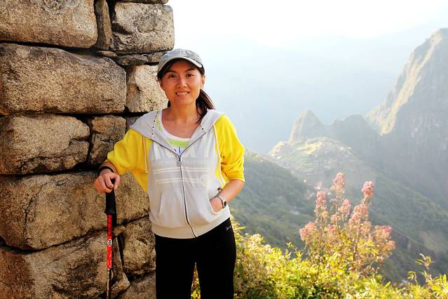坐上车,迷迷瞪瞪给运上了山,在马丘比丘门口排队,进场。一进去,许多人就马上往山上爬,为了能占据山头上有利的位置,好在第一缕阳光洒向马丘比丘时照相。我们也跟着往上爬。好多台阶呀,恨死台阶了现在。