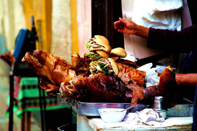 进入Cousco市区,看见路边的小店卖杀好的火鸡和荷兰猪,开始觉得饿了。
