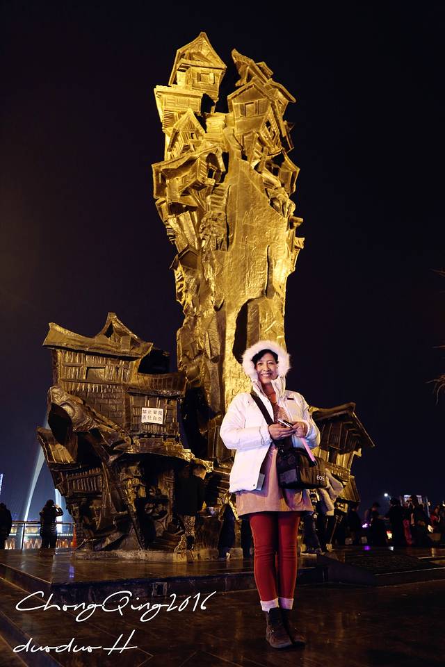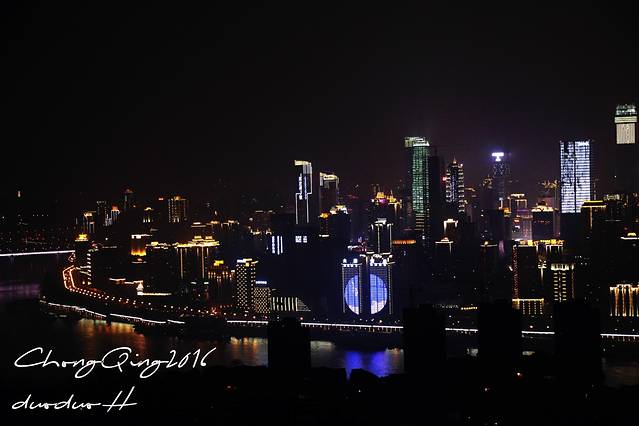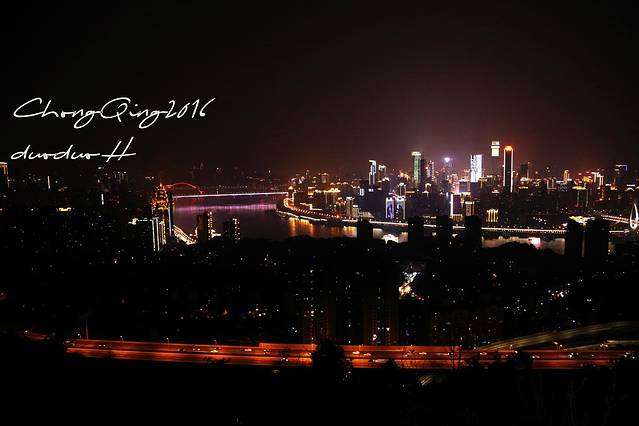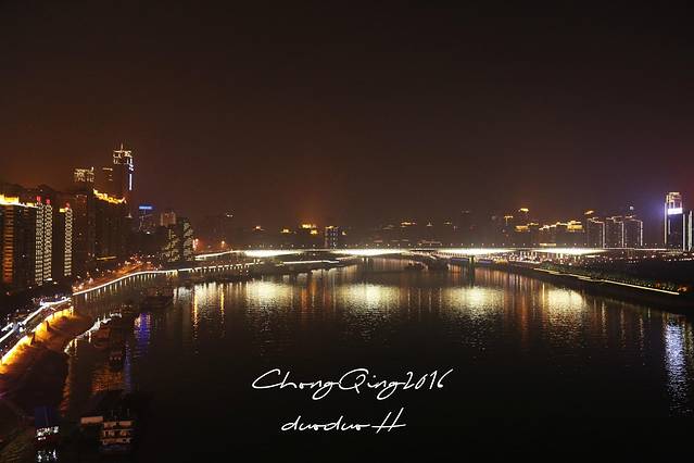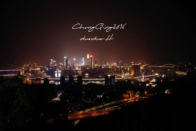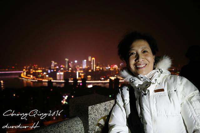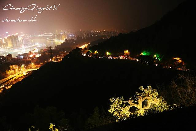 本来做的路线计划是明晚来!但是昨天看了看预报有雨(虽然当晚并没有下)!决定临时改变出行计划!来都来了!怎么能不去观景台一览重庆美景呢~~上面真的有一棵树!对!观景台就那一棵树!但是我俩都没有照那棵树!我拿起了相机,然后我妈让我帮她照相我就给忘记了!很可惜啊!美景是名不虚传了!那边到处都是拿着三脚架,长镜头的!各种专业!只为留下你最美的样子~这么看去真的有香港的感觉~难怪叫小香港呢!就是雾有点大照片有点朦胧~