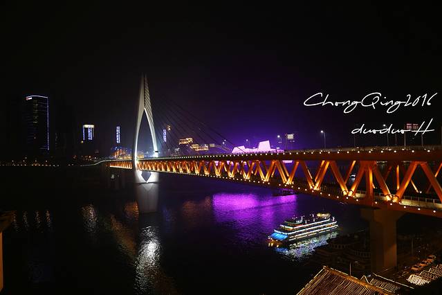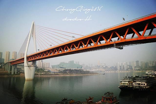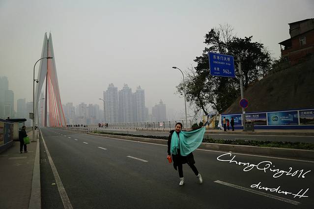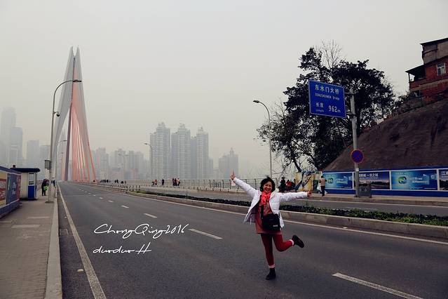 对面没啥玩的!但是要坐回来还要继续排队,坐公交车又要绕很大一圈~我俩也没什么事就顺着东水门大桥往回走~看看江景~~在桥上很准确的找到了朝天门码头的位置!所以晚上才能去的毫不犹豫!没有一点点怀疑自己走错路!!!