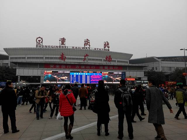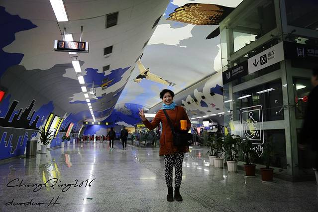 早上七点到,天阴阴的,有点冷~阴天有点难过星人=。=看着好像要下雨,我还以为不能愉快的玩了,最后下午晴了,还有那么一丝阳光~感谢好天气!我终于也踏上了一次春运的步伐。地铁就在北站跟前,很方便。直接坐地铁去观音桥。都不带犹豫的~