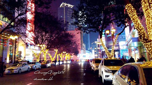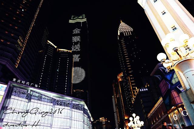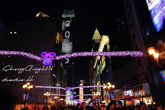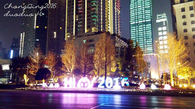 洪崖洞其实就在解放碑旁边!所以有公交到解放碑就毫不犹豫的坐了!而且是末班车!嗨森~顺便看看解放碑的夜景!个人觉得重庆很重视人文方面!晚上都是灯火通明!各种霓虹闪烁!真的是很有过年的喜庆气氛!再加上街上人依然很多!所以心里还是很愉快的!也不觉得累了。
