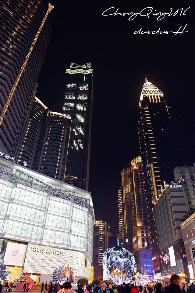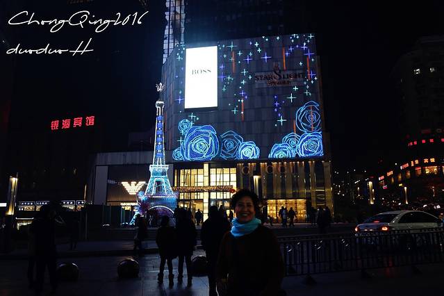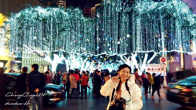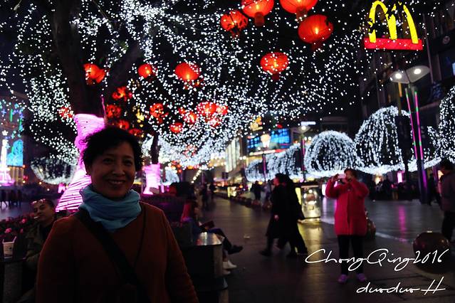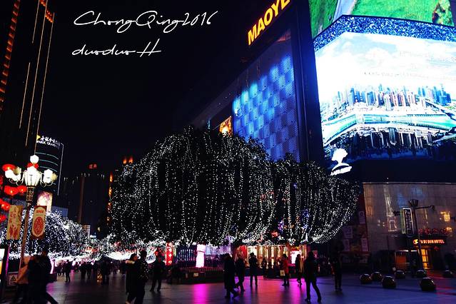 逛完磁器口我俩累坏了想回去歇歇~于是回酒店看了会电视然后到天街去逛了逛,其实商场都一样没买啥,主要是找吃的!在小吃街吃了两碗豌杂面!!好吃啊!!很合我口味!!观音桥步行街很大,晚上也是很漂亮的!!步行街基本灯火通明,小彩灯到处都是,广场上还有搭建主题活动的景观!在做活动~可以去凑个热闹~