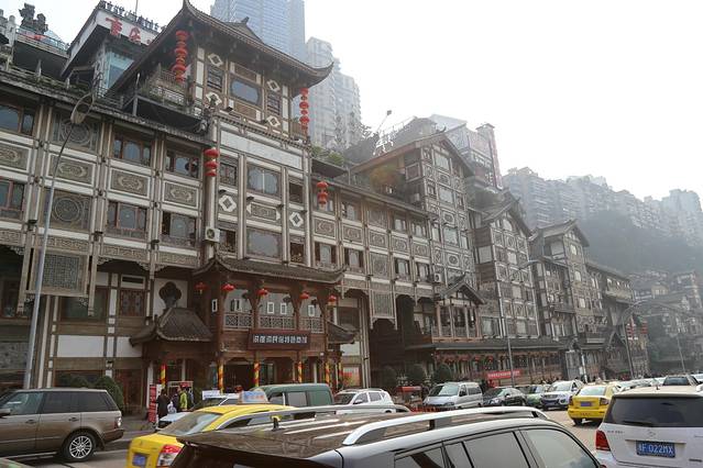 ▲真的很牛逼~上面是洪崖洞!下面是停车场!很大很省地方!其实远看洪崖洞和背后的高楼对比鲜明。