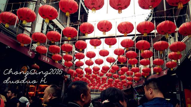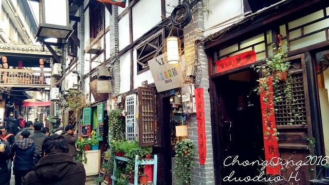 满足我对过年的景区的幻想!到处挂的大红灯笼!热热闹闹的游客!卖得最好的的是陈!麻!花!几乎达到了三五步一家的情况!不管叫陈什么!都卖得很火,不过确实挺好吃的脆脆的!里面的每家小店面都很有特色!主街道基本就是古镇式的建筑,卖各种吃的!小巷子里面是奶茶店~酒吧~花店~杂货铺~买点小纪念品带回去很不错!我买了陈麻花!辣味的好吃!这里有很多卖鸡血藤的,也是这里的特色,如果要买一定要到稍微背一点的小巷子去买,一样的东西,价钱差了几倍。磁器口还是很大的~建议边吃边玩~每条小巷子都给你眼前一亮的感觉!