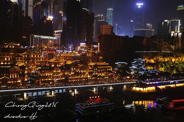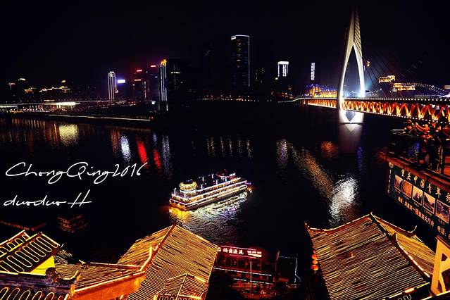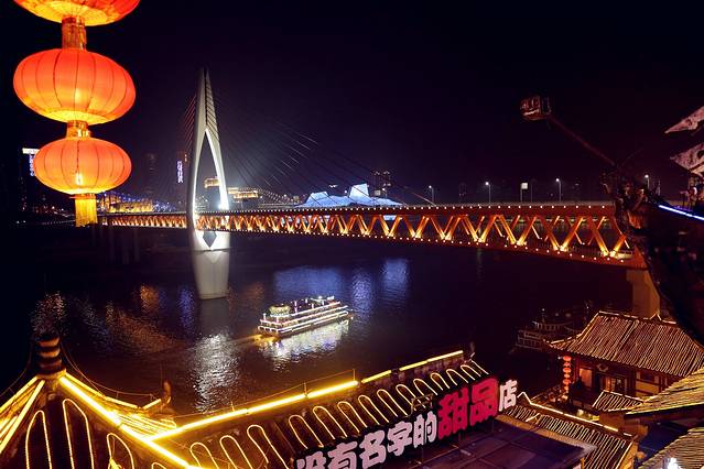 夜晚的洪崖洞真的超美!里面有美味的食屋~络绎不绝的客人~对面就是嘉陵江~江上有来来回回的客船~觉得自己好像真的到了千与千寻里面汤婆婆的汤屋!夜晚有梦就有你。
