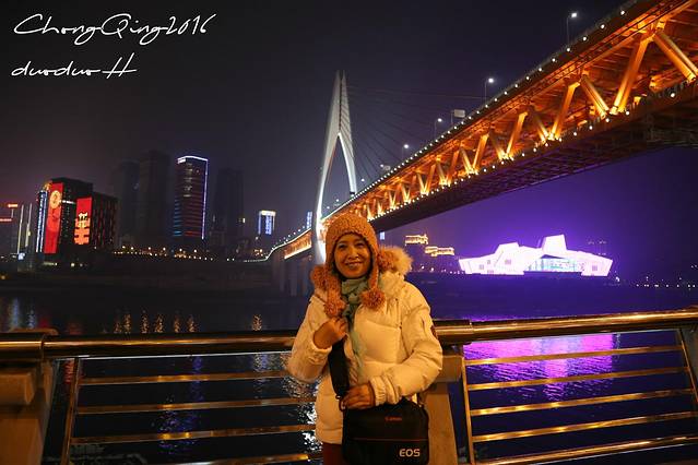 ▲夜晚的江边还是有点凉~还好我带了帽子和大围巾!武装上立马暖和了。