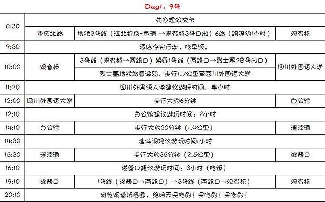 Day1:观音桥→四川外国语大学→白公馆→渣滓洞→磁器口→观音桥步行街。