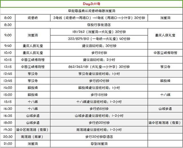 Day3:洪崖洞→重庆人民礼堂→中国三峡博物馆→洪崖洞→解放碑白天→南山一棵树→解放碑夜景→洪崖洞。