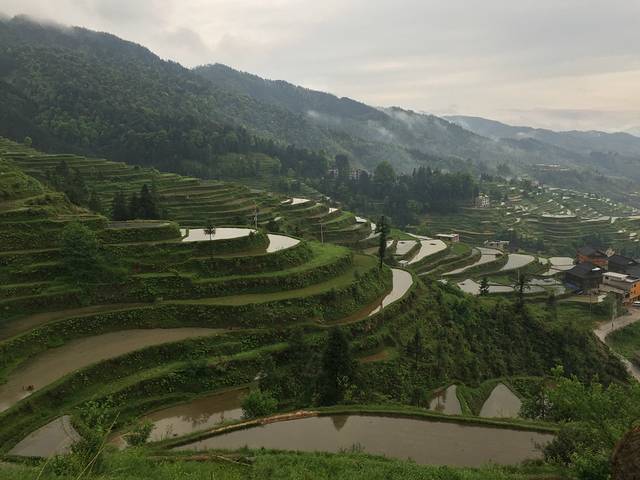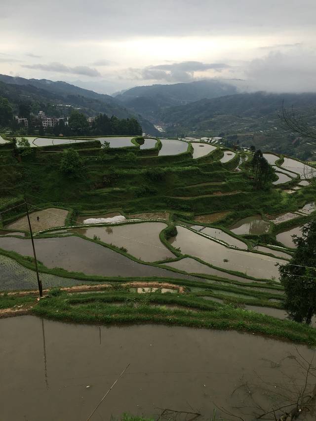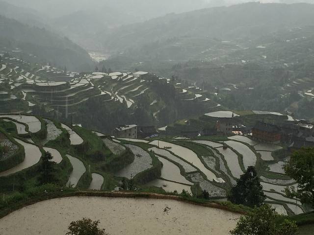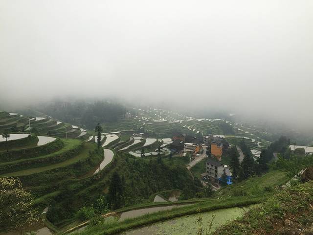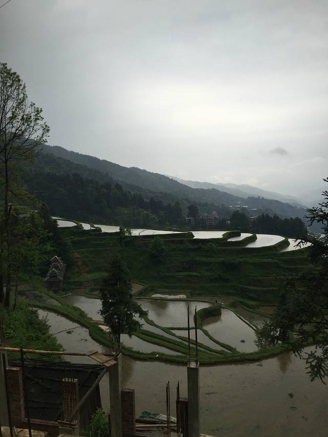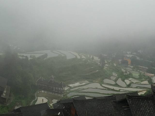 一早我们就去爬山看梯田了,是肇兴侗寨山上的一个梯田,是喵窝老板娘推荐的,因昨晚下雨,一路云山雾罩,空气很好,大家伙都兴趣盎然,梯田我们在雨天算是看到了,虽然不是很大,也算壮观了。一路上趣事不断。从肇兴到邑沙直接包车即可,肇兴寨子里到处有包车师傅,谈好价钱便可出发,离的不远,我们7人包车280元,一个多小时就到了。邑沙最后一个枪手部落,名气很大,很值得一来,最有苗族特色,吃,住、穿都是。住在滚元亮家了,名人呀,小女儿很可爱。这里的人很朴实,我们到处闲逛了逛,满揣着好奇,等待着惊喜。建议如果时间充足,一定要去加榜梯田,从邑沙过去会近很多,那里一定会有惊喜!
