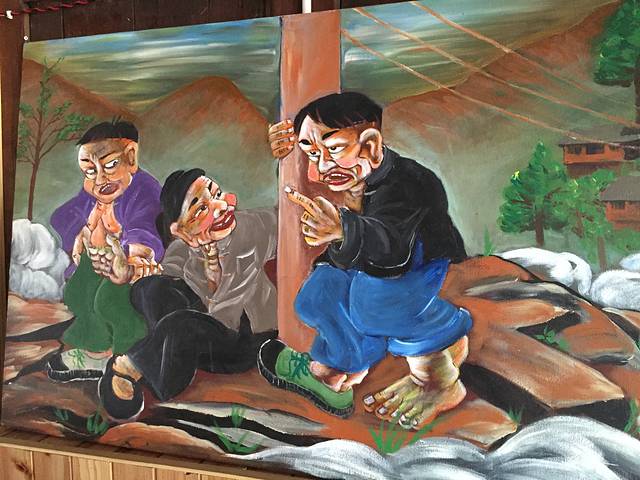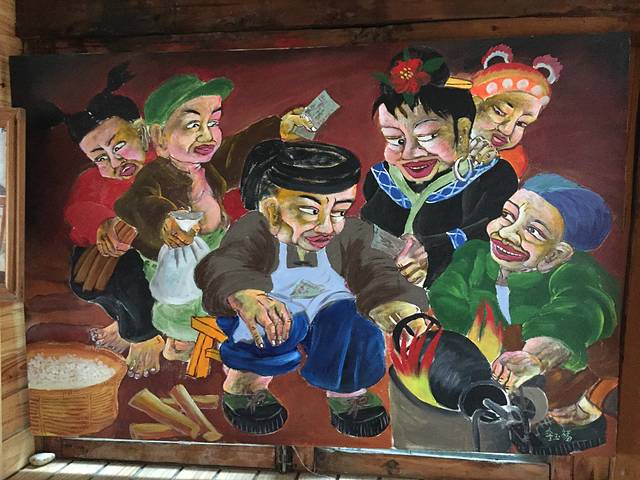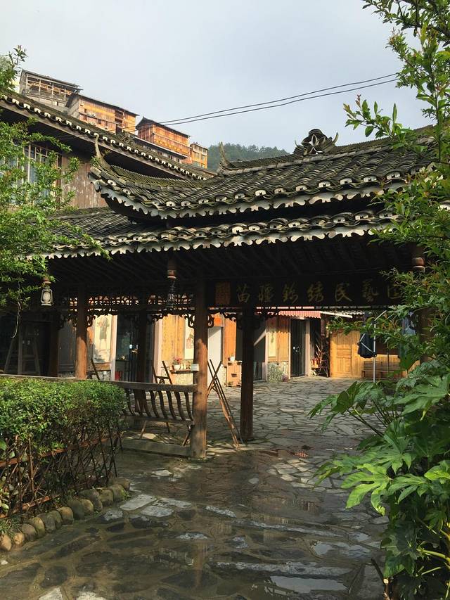 我们在苗寨住了两晚第二晚因为机缘住进了农民画家家里,在这里极力推荐大家住在这里,因为在此真真是苗家,而且住在半山腰,此处看苗寨风景一览无余,夜景尤其美,晚上很安静,没有下面旅店的嘈杂,早晨可以听到农家的鸡叫,非常喜欢他家的观景平台,浓郁的苗乡风情,墙壁上挂着画家自己的画,非常有特色,运用夸张的手法表现当地农民的日常生活状态,非常有欣赏价值。之前看到了许多对苗寨的介绍说这里的商业气息很浓,我的感觉比起丽江、乌镇、周庄这里要原始很多,在此我们收获了很多惊喜,见识了真正的苗家长桌宴、结识了对苗族服饰及文化推崇和传播的山大王、参观苗王家、在苗族民间银器店买到心仪的手链等。对于吃货来说还有它令人难忘的美食,糍粑、牛肉米粉、酸汤鱼、辣子鸡、下饭菜,每家味道都很地道。这里的手工蜡染非常有名。其实归根结底出来玩要和对的人,就是志同道合者。苗家民风纯朴,这是我们来到这里感触最深的。