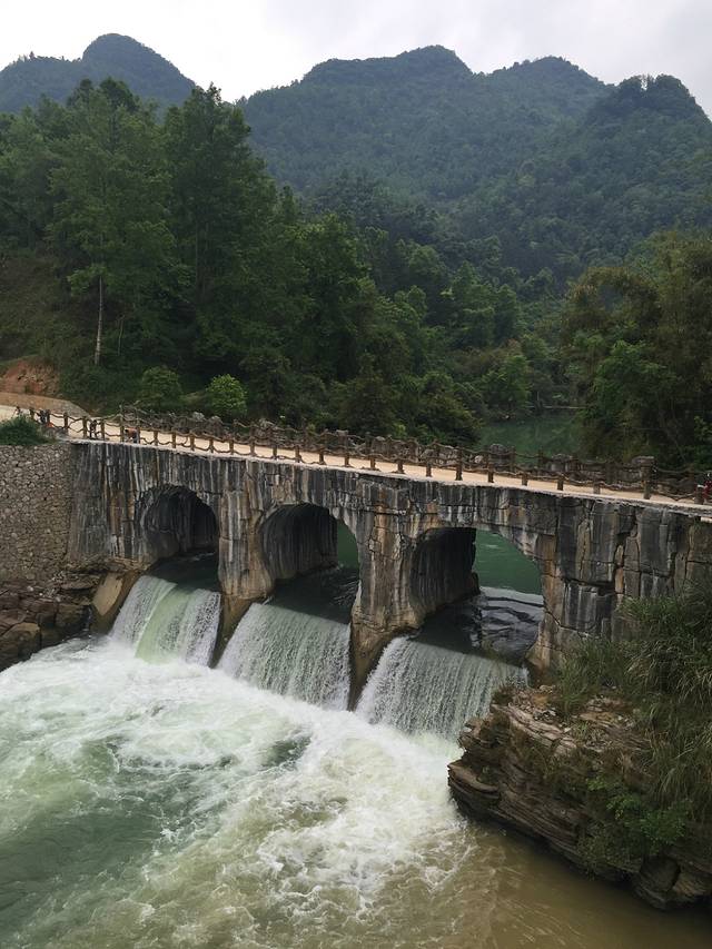 一早8点刚过包车50元到小七孔,一路的惊喜连着惊吓,也算是难忘,让当地人诱惑着逃票,过程能笑死人,一群大女人优雅的离去,从容的从大门进入,气场完胜景区保安,仿佛逃票的是他们!门票加电瓶车每人150元,太贵了,真心贵。风景就是九寨风情,水是绿的,七孔桥因有历史看着不错。让我定价门票应该在60元。转完出来时候尚早,速速定好麻尾到贵阳的K142次列车,17点零4分发车,三个小时就可到贵阳。包车到麻尾火车站120元,半个小时就到了。麻尾车站很小很旧,可以拍怀旧片,六七十年代的故事。一路上火车、高铁、大巴,扑克是最好的消遣,乐趣多多,小赌怡情,为这次出行增趣不少。出来玩一定要带几幅扑克。到贵阳已是晚上8点多,就近在火车站住下,第二日一早还要赶去安顺。
