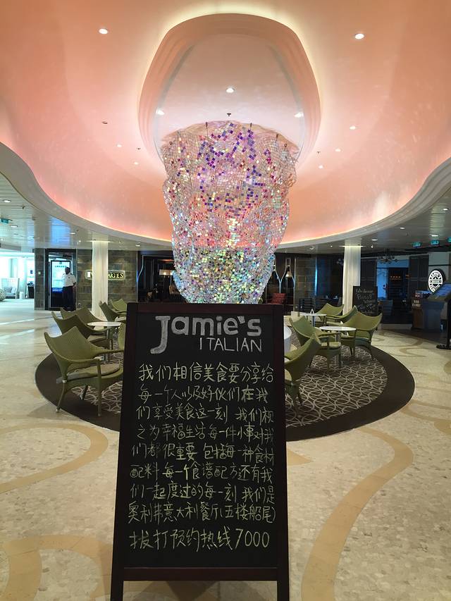 在邮轮上最不愁吃的,基本24小时都有得吃,胃口不大随便拿了些吃的,期间一位领队大叔过来跟我们一起坐,我们一下就聊了起来,才知道这艘游轮能坐那么多人,我们的房间不错,每人要大概五千来块,还说这次请了个顶级美食家可以去尝尝,但价钱也不菲,通过他也了解了不少,哈哈