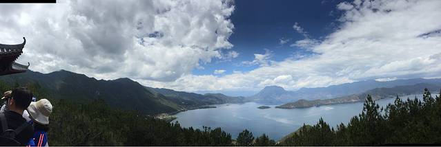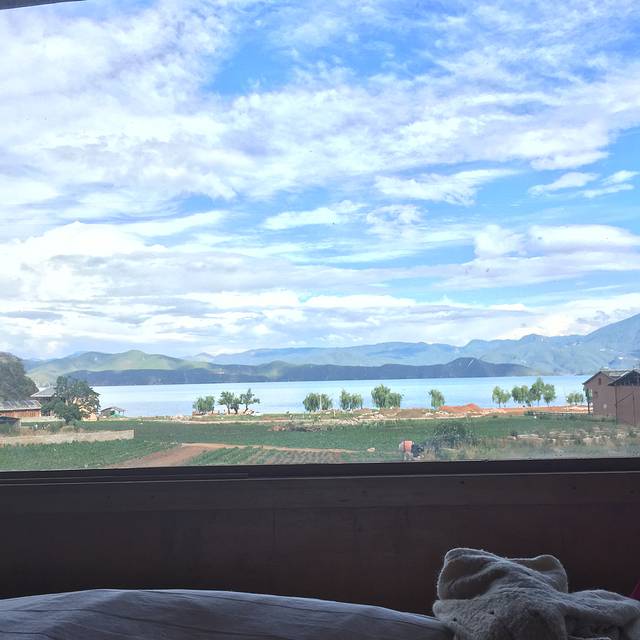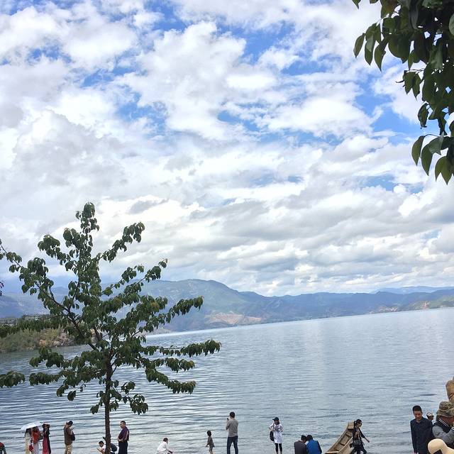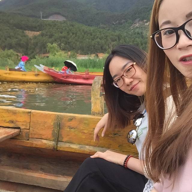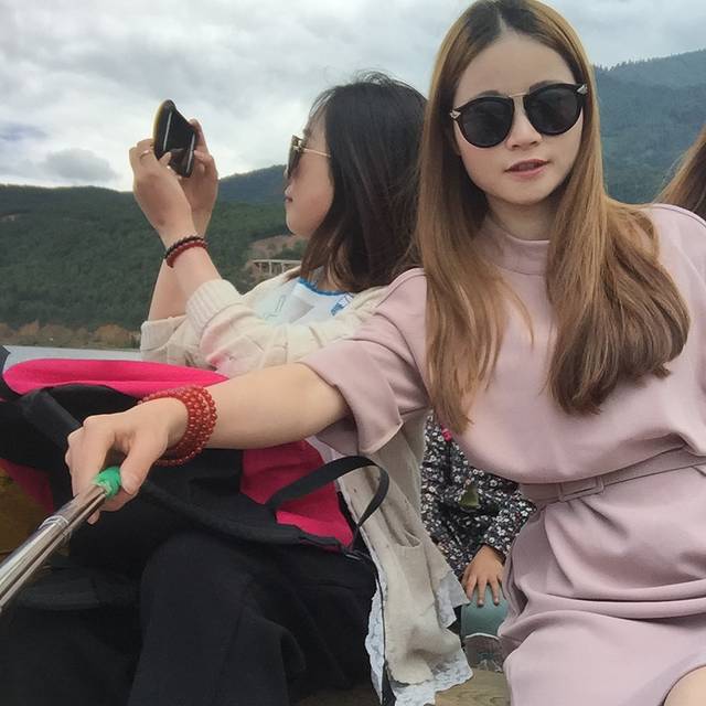泸沽湖也是报的团,导游我是少一天晚上联系我们,一般坐车是7:00左右,地点就是束河古镇或者丽江古城,坐车需要六七个小时,一路都是盘山公路,(据说七八月份,新隧道就会修好,只要3小时左右)。因为我们过去的时候天气不是很好,所以景色并没有洱海好看,团费还包含了在泸沽湖坐船的费用,所以我们在船上更加近距离的欣赏了泸沽湖的美景(划船师傅会问你要不要环岛一圈,导游告诉我们这个并没有多大必要30/人)。坐完船我们就继续前行,到摩梭人家里吃了下午茶,吃了晚饭,然后看篝火晚会,看完入住酒店。