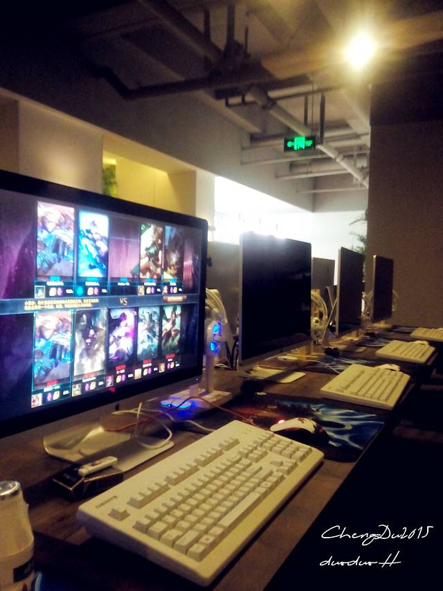 由于逛得比较密集!走了一下午!害怕下雨穿的鞋子也没有运动鞋舒适。所以回酒店休息一会看了看电视,我俩决定出去转转,结果刚一出门发现楼下咋还有个网咖!决定去瞧瞧,前台的妹子都穿的女仆装~电脑全是苹果的,价钱也稍贵。我俩坐了一小时,打了两把LOL。20块钱就没了!对!一小时十块!