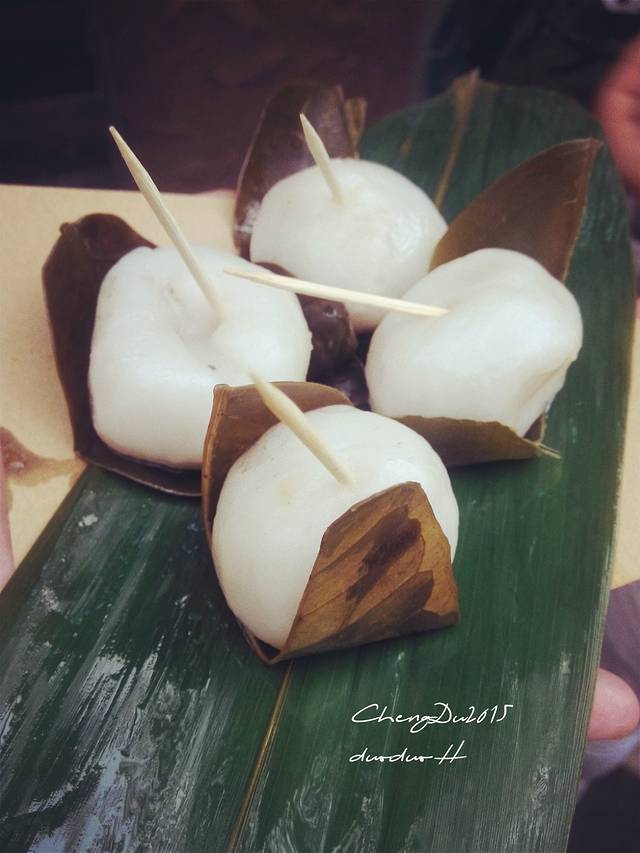 ❀叶儿耙。巴叶包裹着蒸的。糯米的咸甜兼备~味道不错。就是占肚子~还好只有四个。