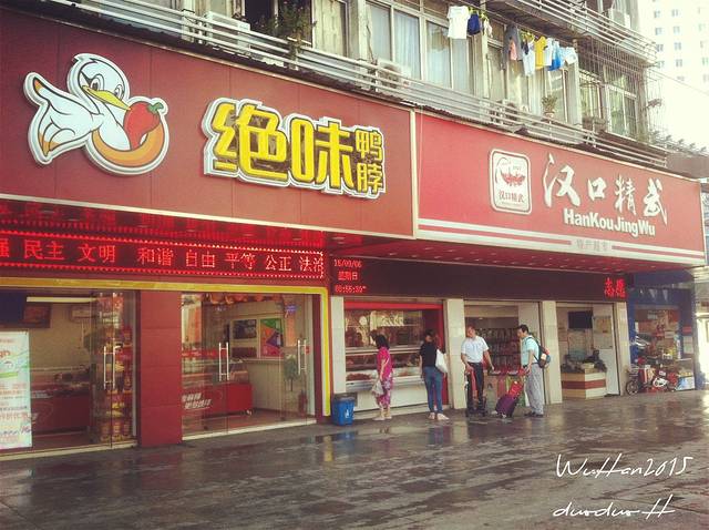 ▶鸭脖店一个挨着一个。好了~就这家汉口精武了!!