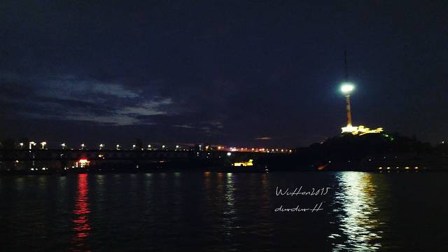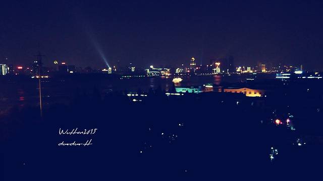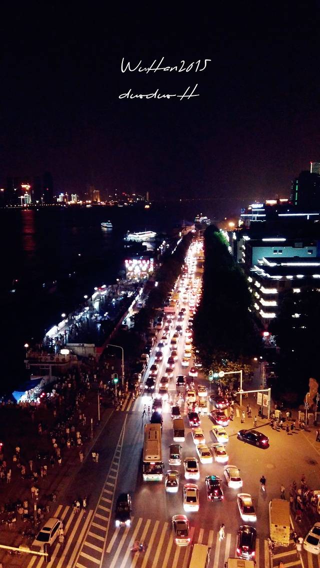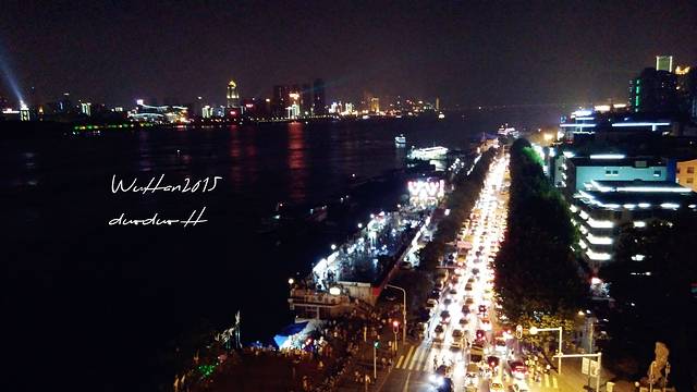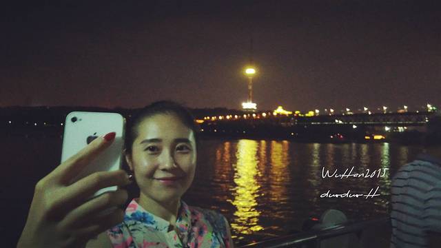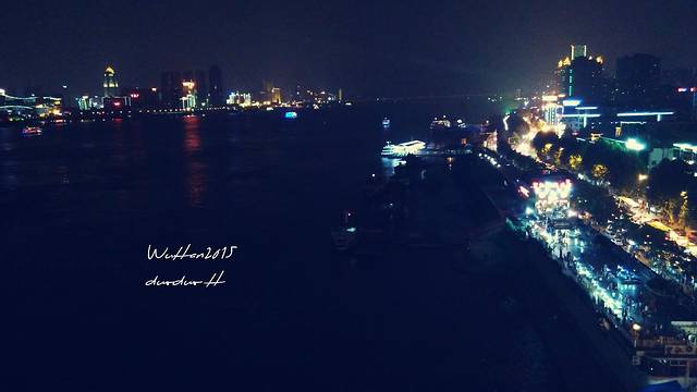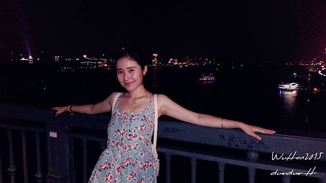 在桥上吹吹江风!看看下面的船~每次有船经过桥下时候觉得自己脚下都在震~江边夜景都是很美的!我是北方银~难得看到这样的景象~桥的一边是户部巷和黄鹤楼,另外一边是龟山和晴川阁。户部巷街道晚上特别热闹!大批的人往那边涌~在桥上能看到下面摆小摊的~应该和西安以前的骡马市感觉差不多~站在桥中间可以看到黄鹤楼的夜景。在桥上慢慢走着看着,码头上特别热闹,有很多人坐在码头延伸到水中的台阶上玩水。看着亮着彩灯的游船、江两岸的阑珊灯火、和一起来欣赏夜景的行人不知不觉的走完了800米的大桥~