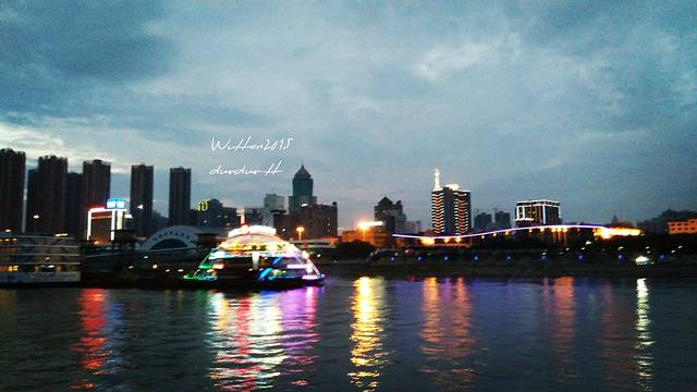 ▶江边!风吹着特舒服一点都不热了!这个工商银行是船!白天我们去被婚礼承包了~晚上会开着游江的~这个船比较漂亮是个七彩的!