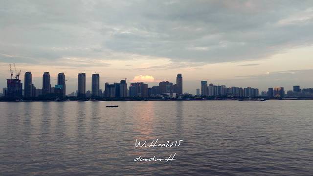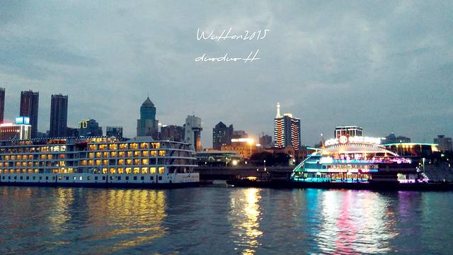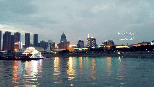 黄鹤楼下来已经是下午了,我们坐轮渡过江,去江滩公园坐船游江。门口有售票的~在他那边买到票会开电瓶车走一段路到公园中间的码头,大家就一起等到点上船吧~坐船建议坐八点左右的!这样可以看到比较好的江边夜景!我们坐的有点早 六点半的船!开船的时候是傍晚。等到天黑显出两边夜景的时候我们已经在往回走了!那时候黄鹤楼的夜灯才打开!可是我们已经走得比较远了~坐在甲板上面吹着江风看着江景往后移动~有的船比较高级有自助,可以边吃边游江!大家在甲板上都是各种拍拍拍~沿江的城市夜景是真的美啊!船会从我们住的江滩公园那里一直开到武汉长江大桥,在桥下转到黄鹤楼那边!再返回江滩公园。说的是游览一小时但是我感觉全程在江面上游览的时间并没有一小时。