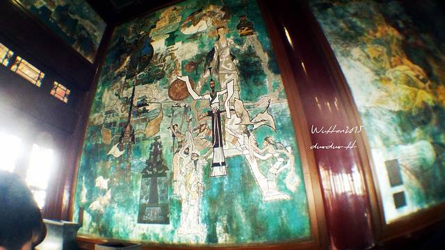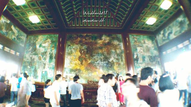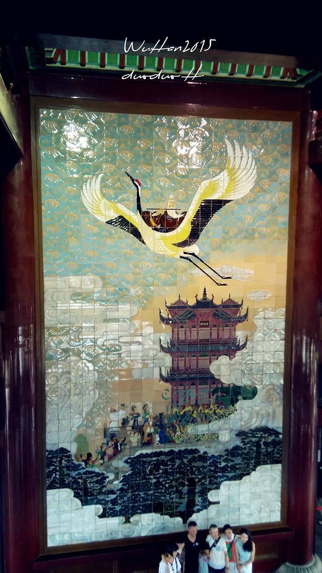 二楼大厅正面墙上有《黄鹤楼记》,两侧为两幅壁画,一幅是“孙权筑城”,形象地说明黄鹤楼和武昌城相继诞生的历史;另一幅是“周瑜设宴”,反映三国名人去黄鹤楼的活动以及节日。人超多,挤着挤着看了一下就走了!