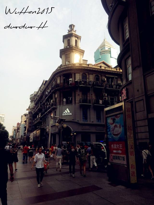 放下行李换上夏装!立刻去楼下江汉路步行街逛逛。这里的建筑保存的都很好,老建筑几乎很多都是银行!外面的牌子上有建筑的介绍,哪一年建造的,曾经这个建筑做过什么~很详细~在江汉步行街 走着有一种穿越的感觉~抬头还能看到阳台上晒着洗好的衣服~放着主人种的花花草草~住到这也挺幸福的~在自己的小阳台上感受繁华的商圈!阿迪耐克什么的也都在这个古老的步行街给人带来眼前一亮的感觉~复古风街道搭配时尚运动风~武汉商圈蛮多,江汉路步行街、楚河汉街、光谷步行街~都走得不同风格,有复古的、时尚的、前卫的~!