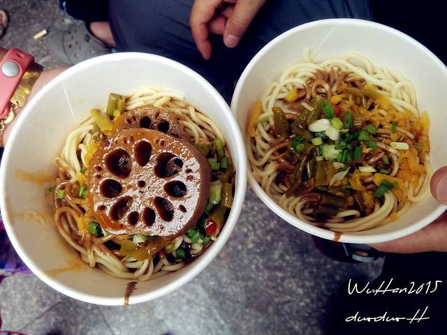 ▶江汉路商圈-热干面。一份加了莲藕,配着吃挺不错的。热干面是芝麻酱多调味相对少,担担面是调味多芝麻酱少。这是我认为的差别~不过我都爱吃呀!因为芝麻酱起到润滑的作用,所以我在武汉吃很多,也没有不消化的感觉。