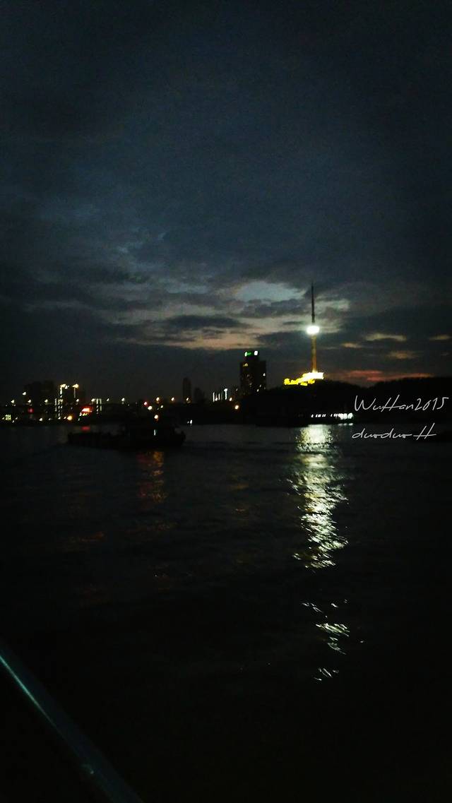▶我们已经开船了。天开始慢慢黑了,两边的灯也慢慢亮起来!